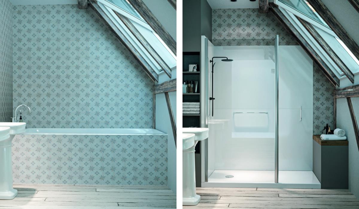 Oui, c'est également possible et utile pour favoriser l'accès de plain-pied plus sécurisant pour une personne plus âgée, notamment. Dans cette approche, ce sera l'ancienne cabine de douche qui sera supprimée et pas la baignoire.