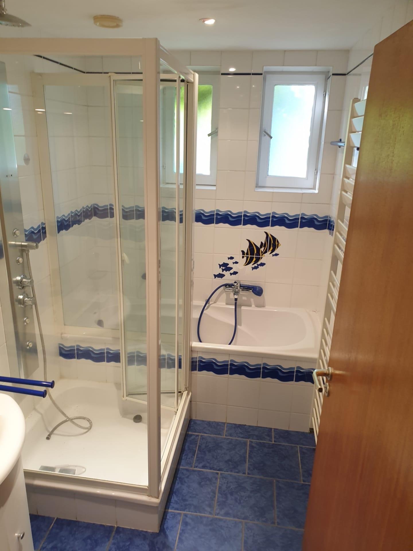 - Une douche à l’italienne, plus spacieuse qu’une cabine de douche intégrale